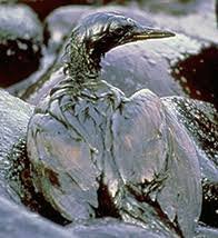 - Because oil is less dense than water, it forms a thin slick that devastates birds and mammals that contact the surface to breathe.