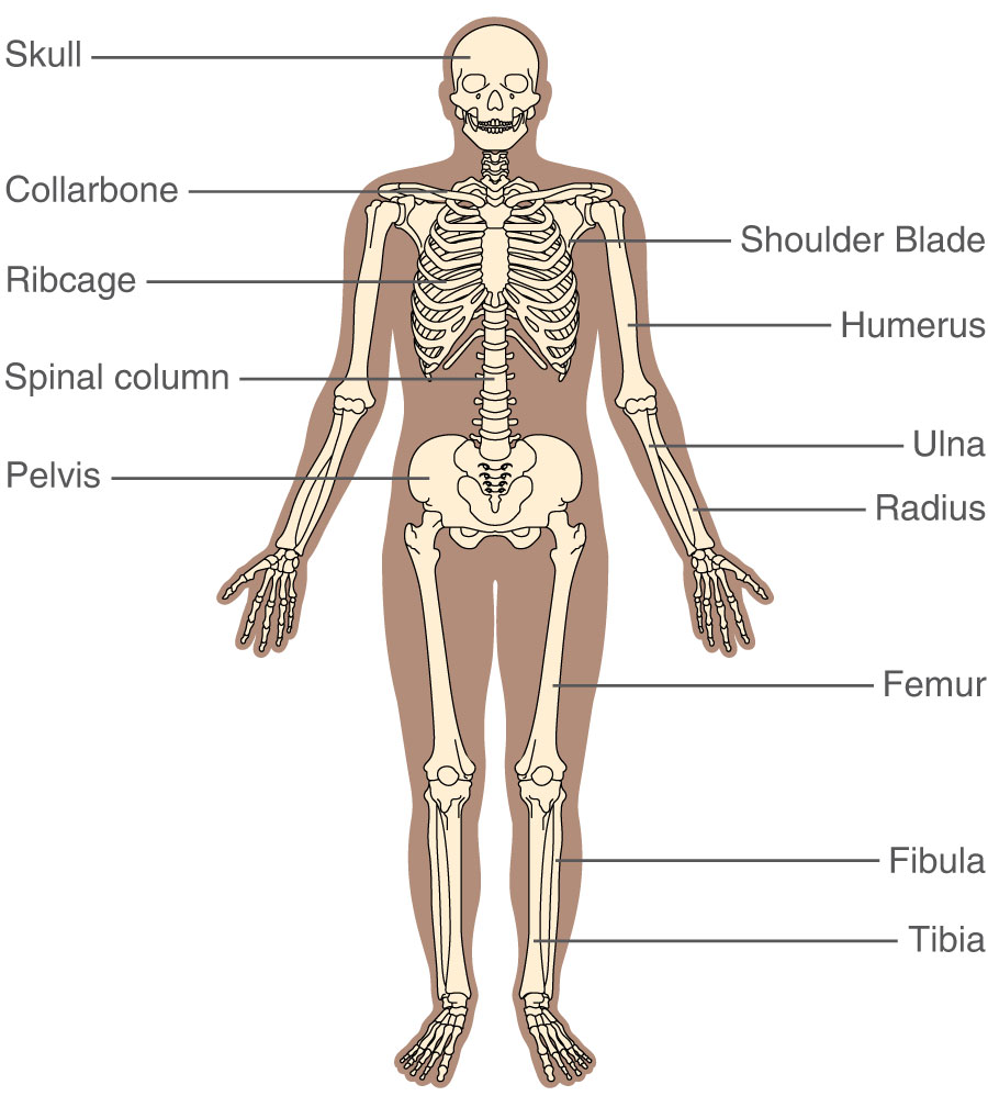 Our skeletal system is composed of 206 BONES that hold up our muscles, organs and skin. In addition, the some bones are responsible for making new blood cells in their marrow.
