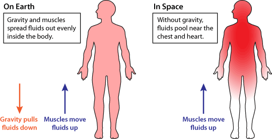 - This also leads to blood getting “stuck” in the upper part of the body leading to a swollen look in astronauts.