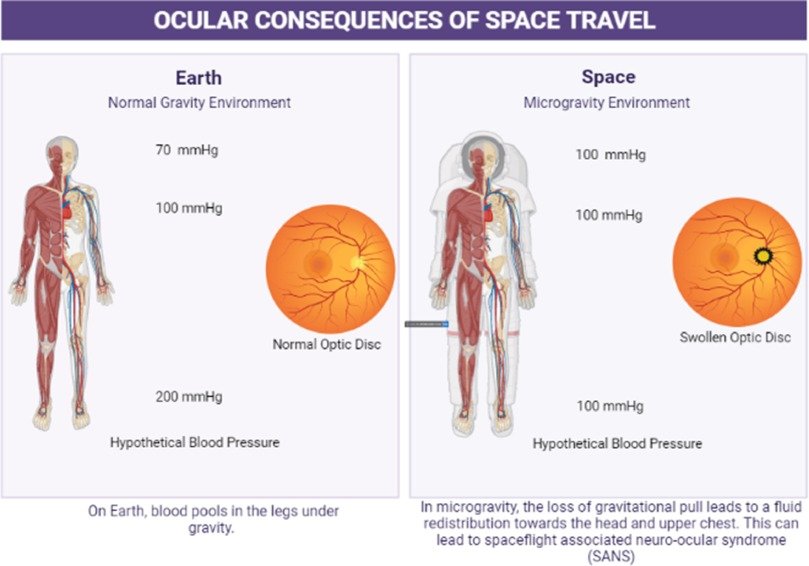 - However, without gravity, the fluid filled center of the eye deforms and puts pressure on the optic nerve so most astronauts experience blurry vision during their time in space.