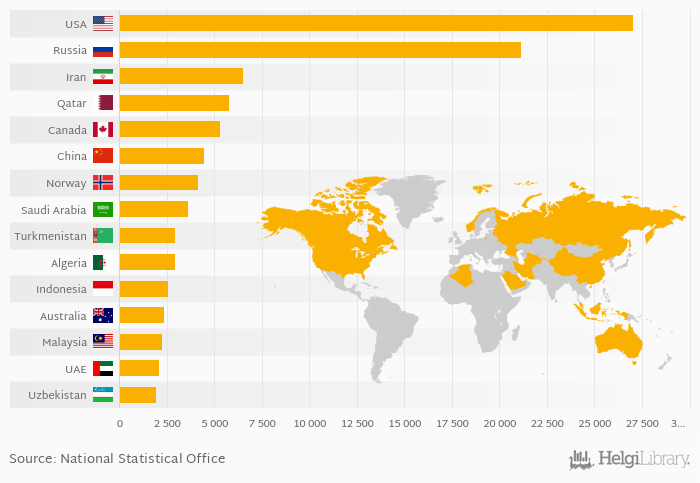 United States consumes the most natural gas in the world.