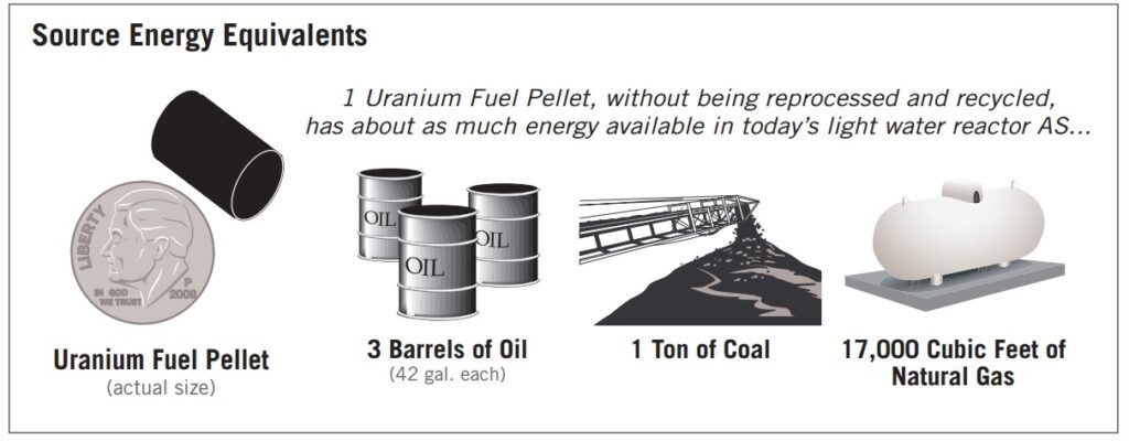 - As you can see from the diagram, one tiny pellet is equivalent to huge amounts of fossil fuels.