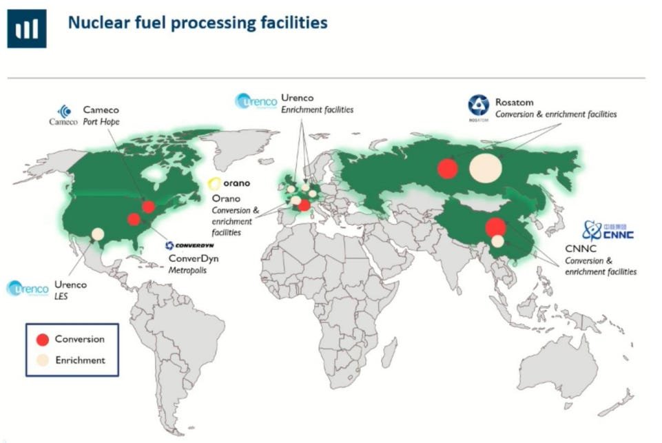- Due to the delicate nature of this process, there are only a few facilities in the world that enrich uranium.