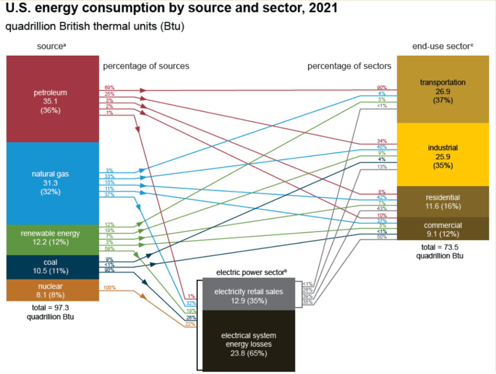 - Petroleum accounts for 36% of all the energy consumed in the US.