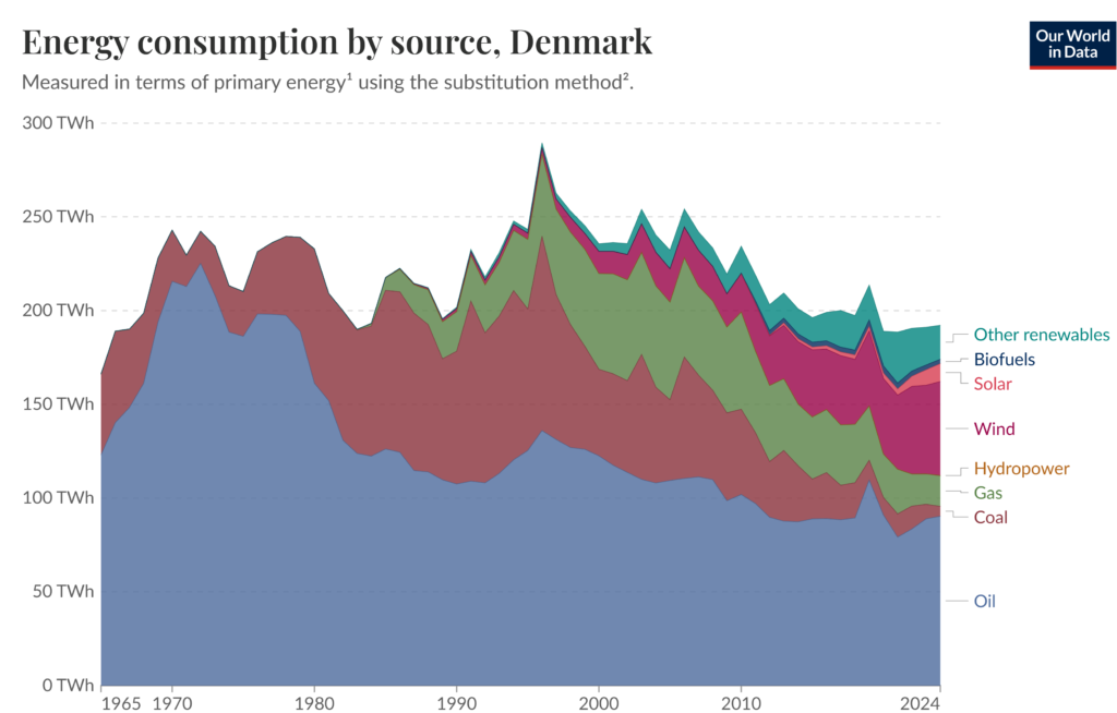 - 26% of total energy and over 50% of electricity is generated by wind in Denmark!