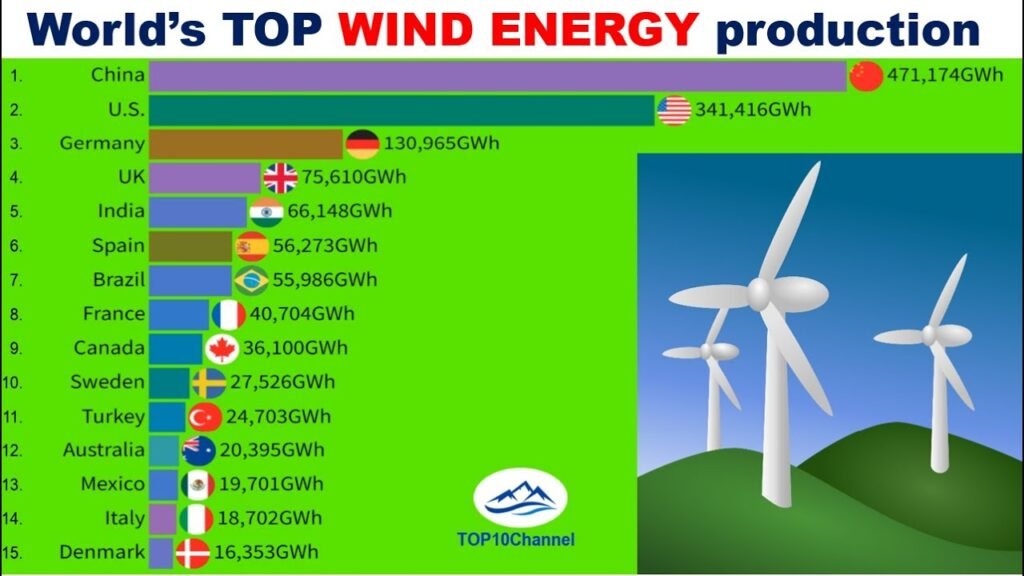 China produces the most wind energy in the world.